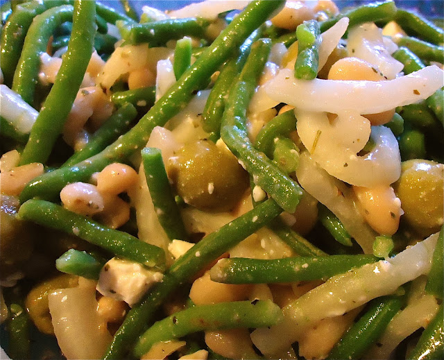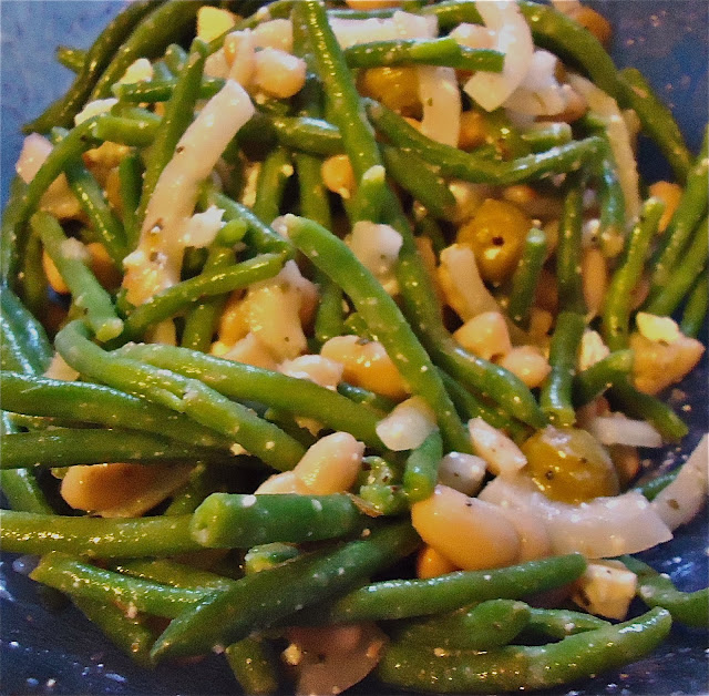 Once green beans are done add that with the rest of the ingredients, Pour your dressing (just eyeball it, and taste) and extra vinegar if desired, or lemon. I like mine with a little extra vinegar or lemon, I like how the acid brings the flavors out! If you don't want to use Italian dressing, just use Olive oil and vinegar (or lemon) Add salt pepper to taste. And serve while its still warm, or chilled!