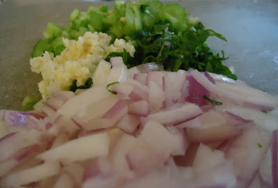 Take all ingredients from step 1, and cook them up in a pan, with your oil, and onion powder, garlic powder salt and pepper, eyeball it, don't hold back on the garlic and onion powder, you can always add more salt and pepper to them once finished. Cook till onions are translucent and celery is soft.