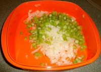 In a food processor or with a fork mash up the beans leaving a few lumps, also dice up the onions and celery